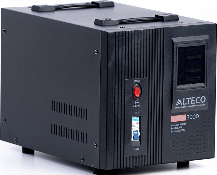 Автоматический cтабилизатор напряжения Alteco STDR 3000 (Альтеко СТДР 3000) предназначен для обеспечения стабильным напряжением подключенных к нему устройств. Широко используется в бытовых и промышленных сферах для защиты техники от аварийных скачков электроэнергии.