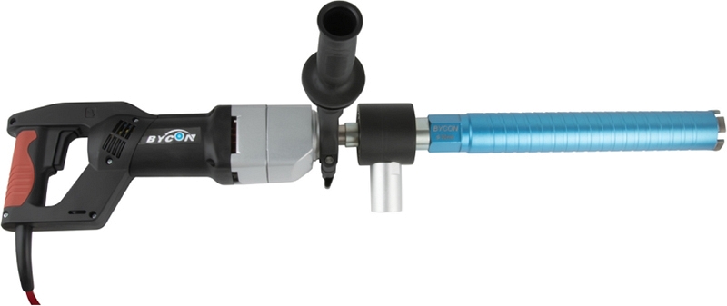 Бесщеточная дрель для сухого алмазного сверления с микроударом Bycon DB-132 (Байкон ДБ-132) – алмазная дрель с микроударом для сухого алмазного бурения отверстий Ø 10 – 102 мм в бетоне, железобетоне, "легком" бетоне, шлакобетоне, кирпиче и других особенно твердых материалах при высокой рабочей скорости; как с использованием станины, так и "с рук"; для профессионального использования. Отличный вариант как для монтажников кондиционеров, так и для электриков. С дополнительными переходниками позволяет работать как алмазными коронками стандартной длины, так и коронками для подрозетников.
