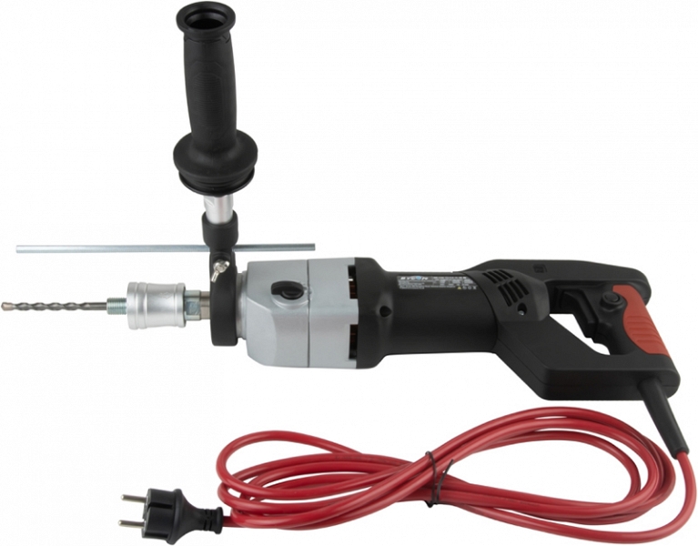 – Другая функция заключается в том, чтобы избежать перегрузки по току при бурении, когда коронки встречаются с твердым материалом - Механическая проскальзывающая муфта предельного момента (предохранительное сцепление) для обеспечения максимальной безопасности: защищает персонал, дрель и инструмент от высоких механических перегрузокДополнительная регулируемая передняя рукоятка для сверления без штатива: легко ослабить