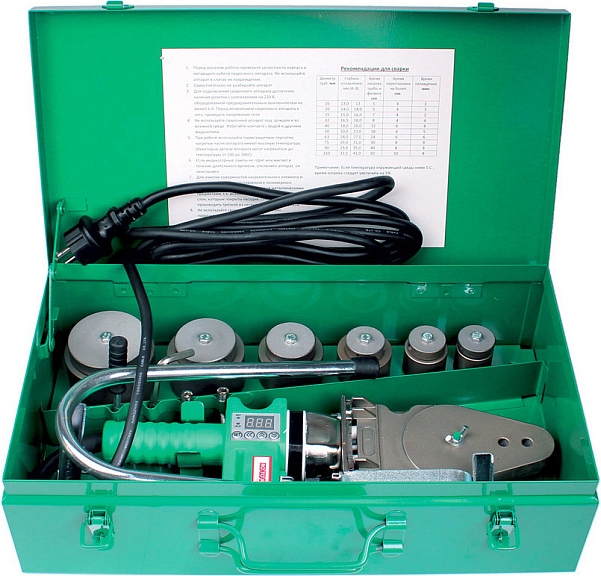 - Сварочные насадки Ø 20, 25, 32, 40, 50, 63 мм (Ø 16 мм при необходимости приобретается отдельно!)