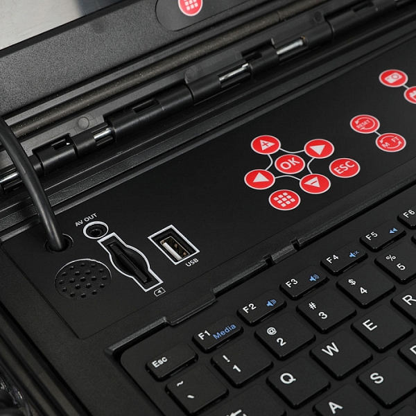 – Блок управления: цветной монитор HD 9", 1080Р (1920 × 1080) с солнцезащитным козырьком; встороенный литий-ионный аккумулятор, емкостью 9000 мАч; съемная беспроводная клавиатура