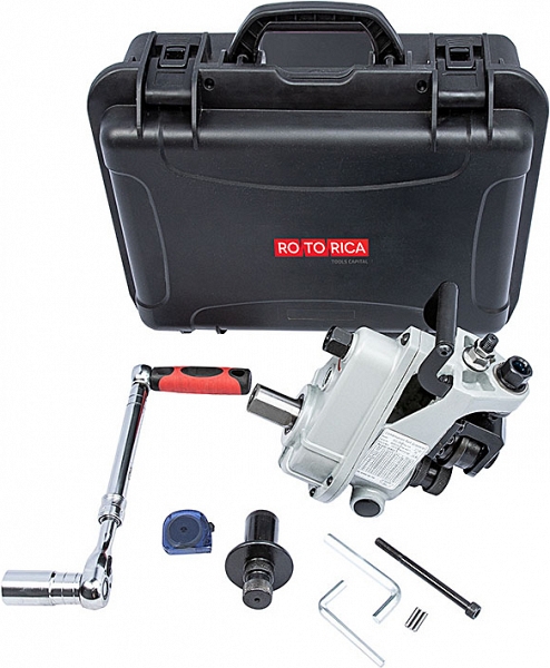 Ручной комбинированный желобонакатчик Rotorica RG-2M (Роторика РГ-2М) – портативное устройство для накатки желобков (канавок) на алюминиевых и углеродистых стальных трубах из алюминия и углеродистой стали Ø 1" – 6" sch. 10/40 и нержавеющих стальных трубах из нержавеющей стали Ø 1 1/4" – 6" sch. 10/40, толщиной стенки до 6 мм при монтаже водопроводных, отопительных, пожарных и промышленных трубопроводов без применения сварки. Подходит для выполнения небольших и среднеобъемных работ на строительной площадке. Может работать, как энергонезависимо, без подключения к источнику питания, так и с подключением через привод к резьбонарезным станкам или электрическим клуппам.