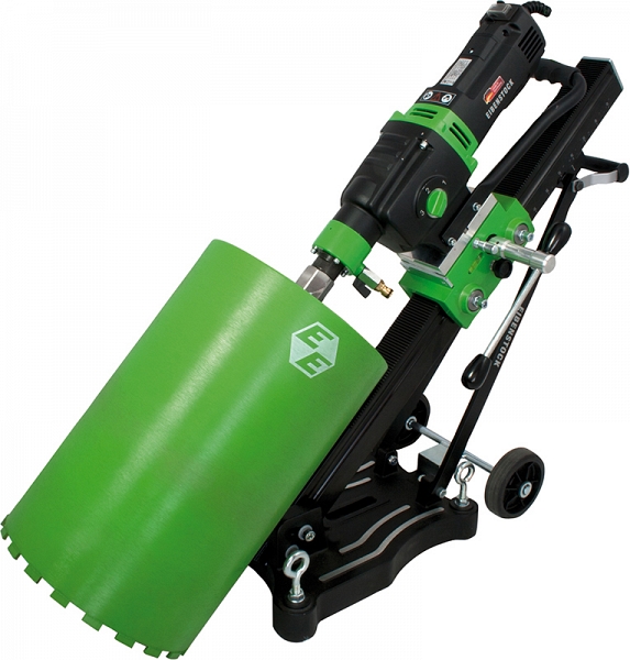 Установка алмазного бурения Eibenstock DBE 352 (Айбеншток ДБЕ 352) предназначена для мокрого сверления отверстий Ø 41 – 352 мм в железобетоне, кирпиче, натуральном камне и асфальте в гражданском и промышленном строительстве, при проведении электромонтажных работ, монтаже систем водоснабжения, отопления, вентиляции и других инженерных сантехнических коммуникаций.